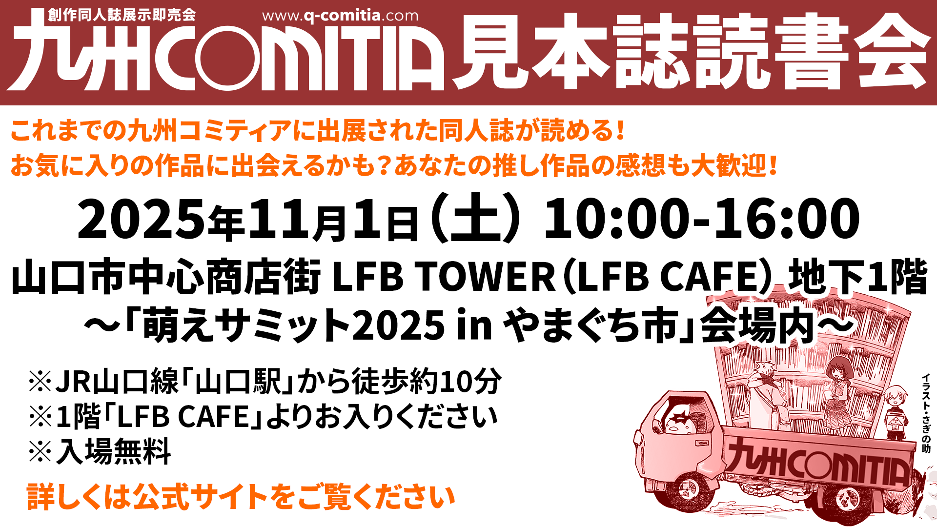 今年も山口市中心商店街で開催される「萌えサミット2025 in やまぐち市」会場内で、九州コミティア見本誌読書会を開催します!