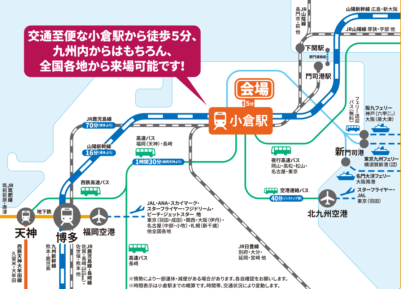 九州内はもちろん、全国各地からのアクセスが容易です。